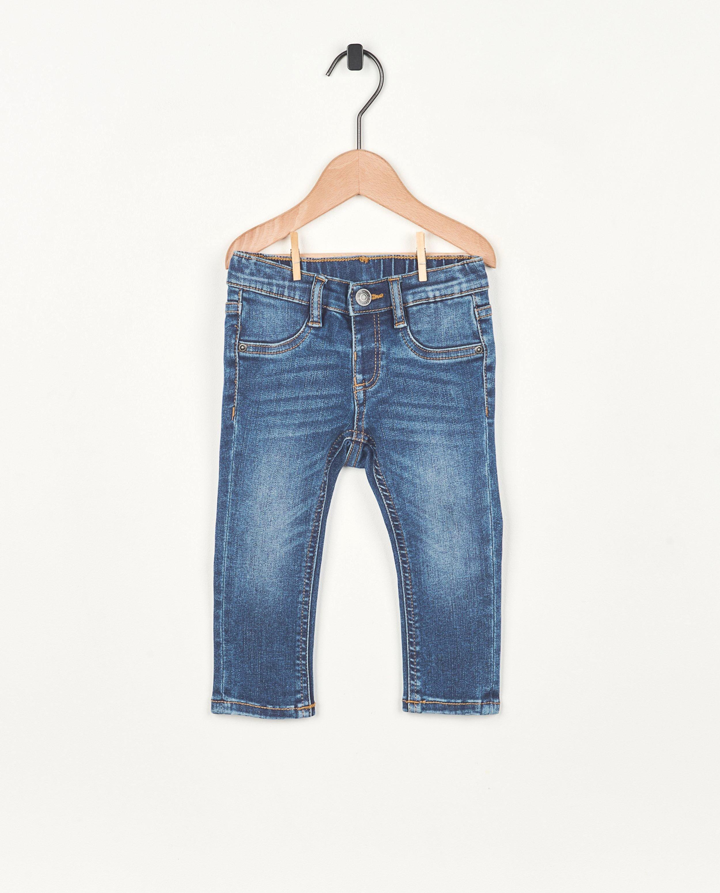 Votre petit trésor attirera tous les regards dans ce beau jeans à effet délavé. Grâce à la taille ajustable, il est aisé d’élargir ou de rétrécir le pantalon. Ce jeans ne présente pas de fermeture à glissière, mais bien un bouton-pression à la taille et deux poches arrière.