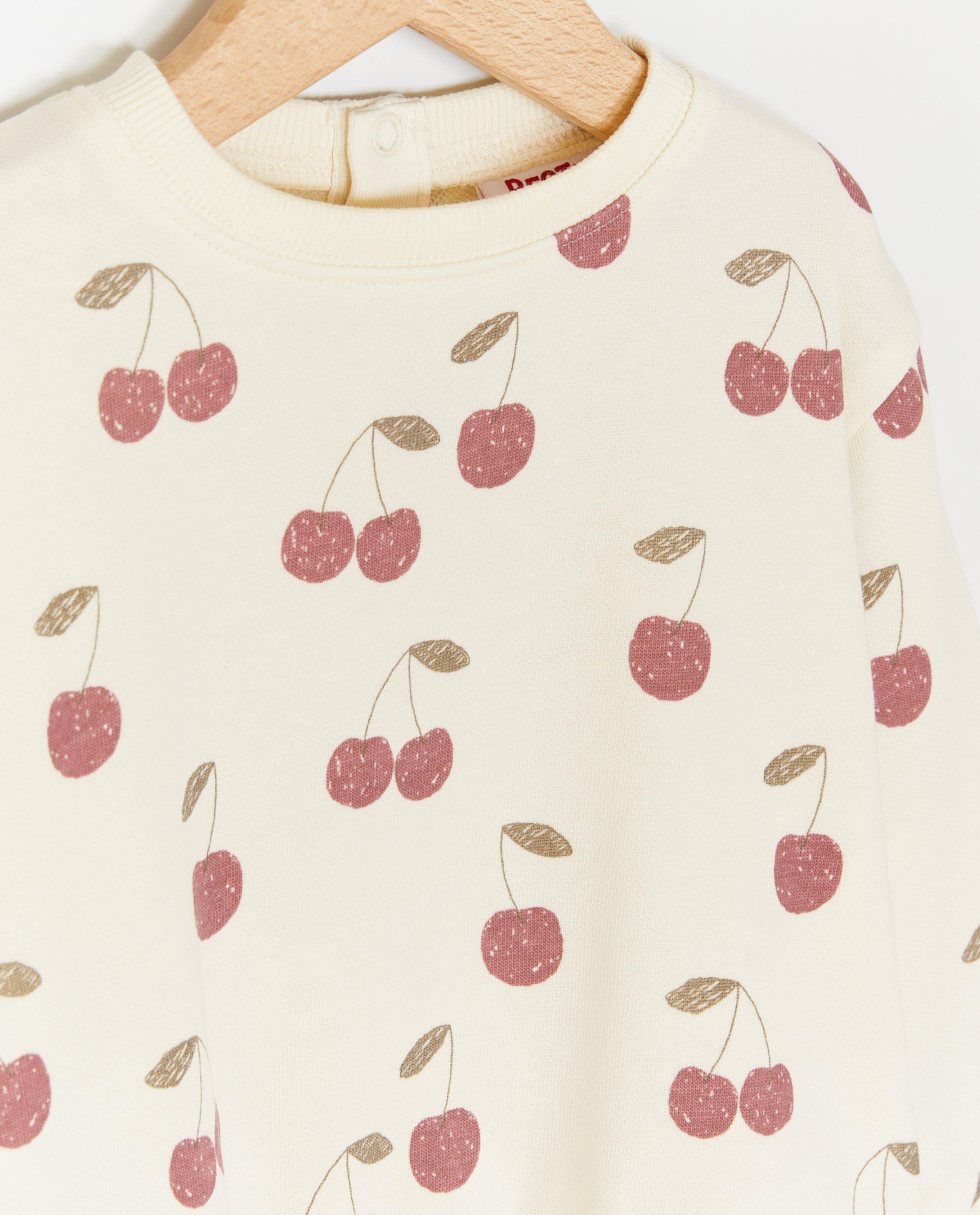 Découvrez ce beau sweat, parfait pour les petits aventuriers ! Il est confectionné dans des matières respirantes et présente une coupe confortable. Le sweat affiche en outre un joli imprimé à cerises. Grâce aux petits boutons-pressions au dos, il est toujours très facile de changer votre enfant. Parfait pour chaque jour, de la marche à quatre pattes aux câlins !