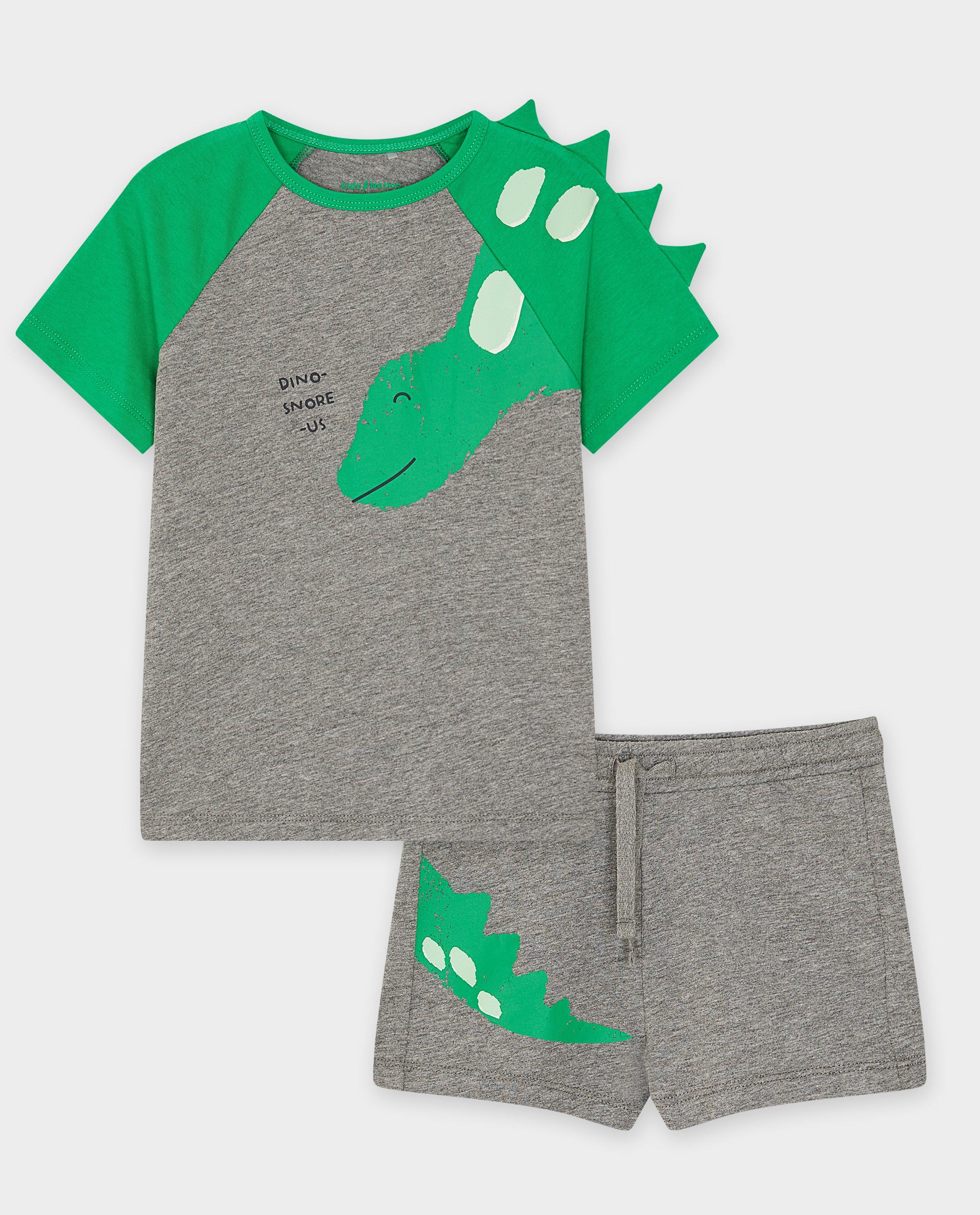 Gâtez votre fan de dinos grâce à ce magnifique pyjama ! Il est confectionné dans une douce matière agrémentée d’un imprimé à dinosaures rigolo. L’avant du t-shirt présente une chouette inscription et l’épaule des écailles. Le short affiche une taille élastique, un cordon de serrage sous tunnel et un imprimé de la queue d’un dinosaure.