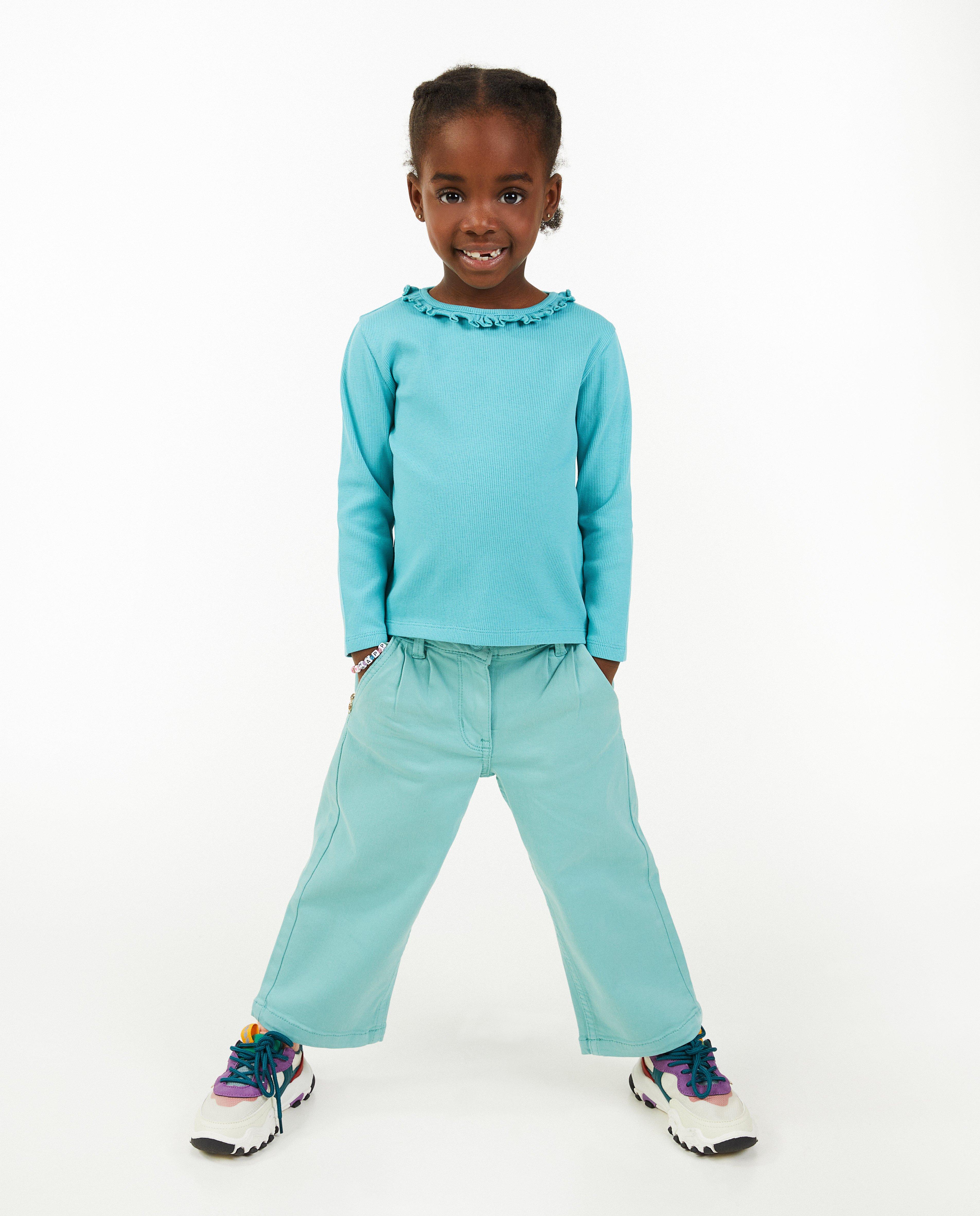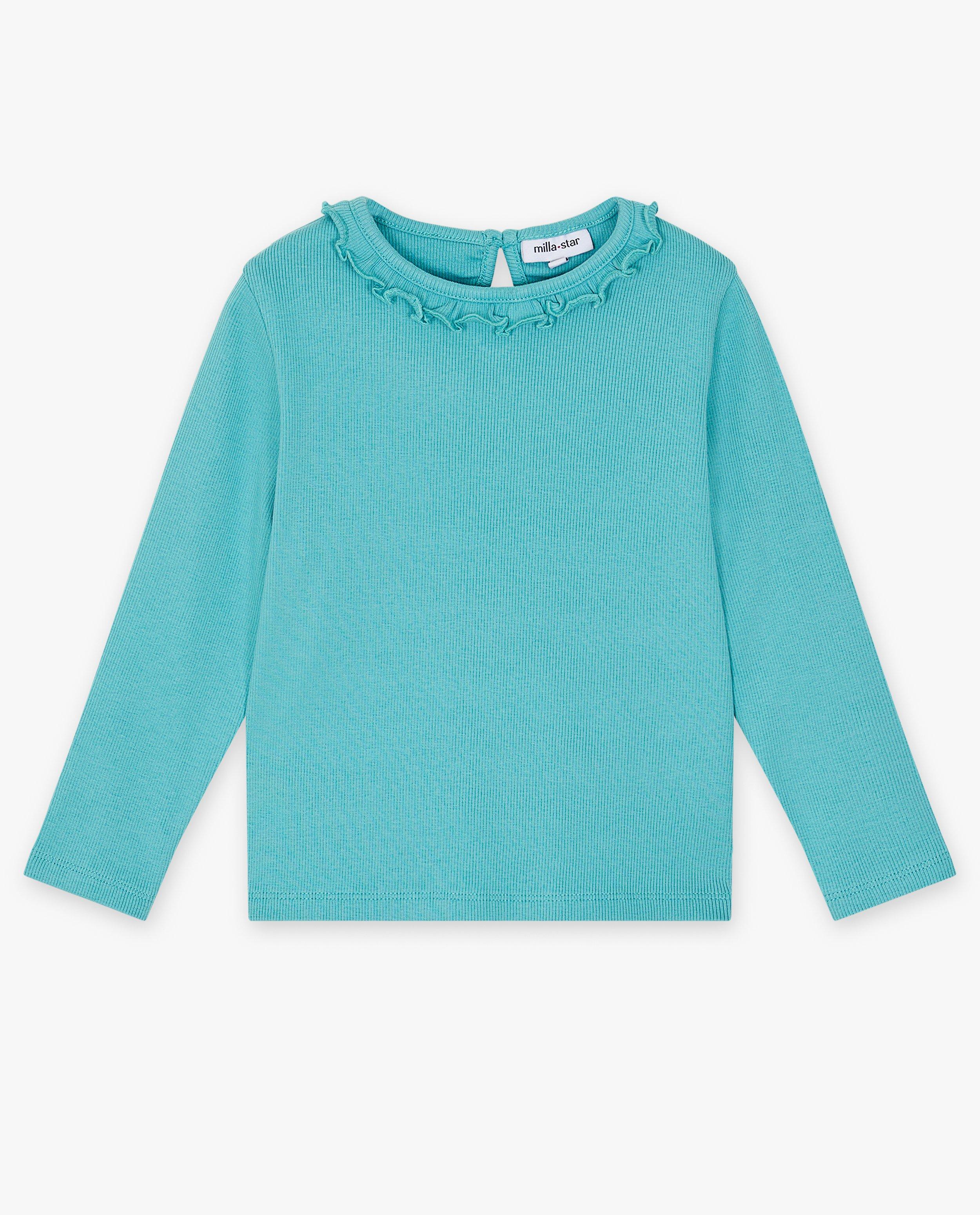 Il n’y a rien de mieux que de jouer dehors, d’autant plus avec un magnifique t-shirt à manches longues comme celui-ci ! Il présente un beau bord ondulant au col, une fermeture à boutons-pressions pratique au dos avec une petite découpe. La matière est joliment côtelée et agréablement stretchy. Très chouette !