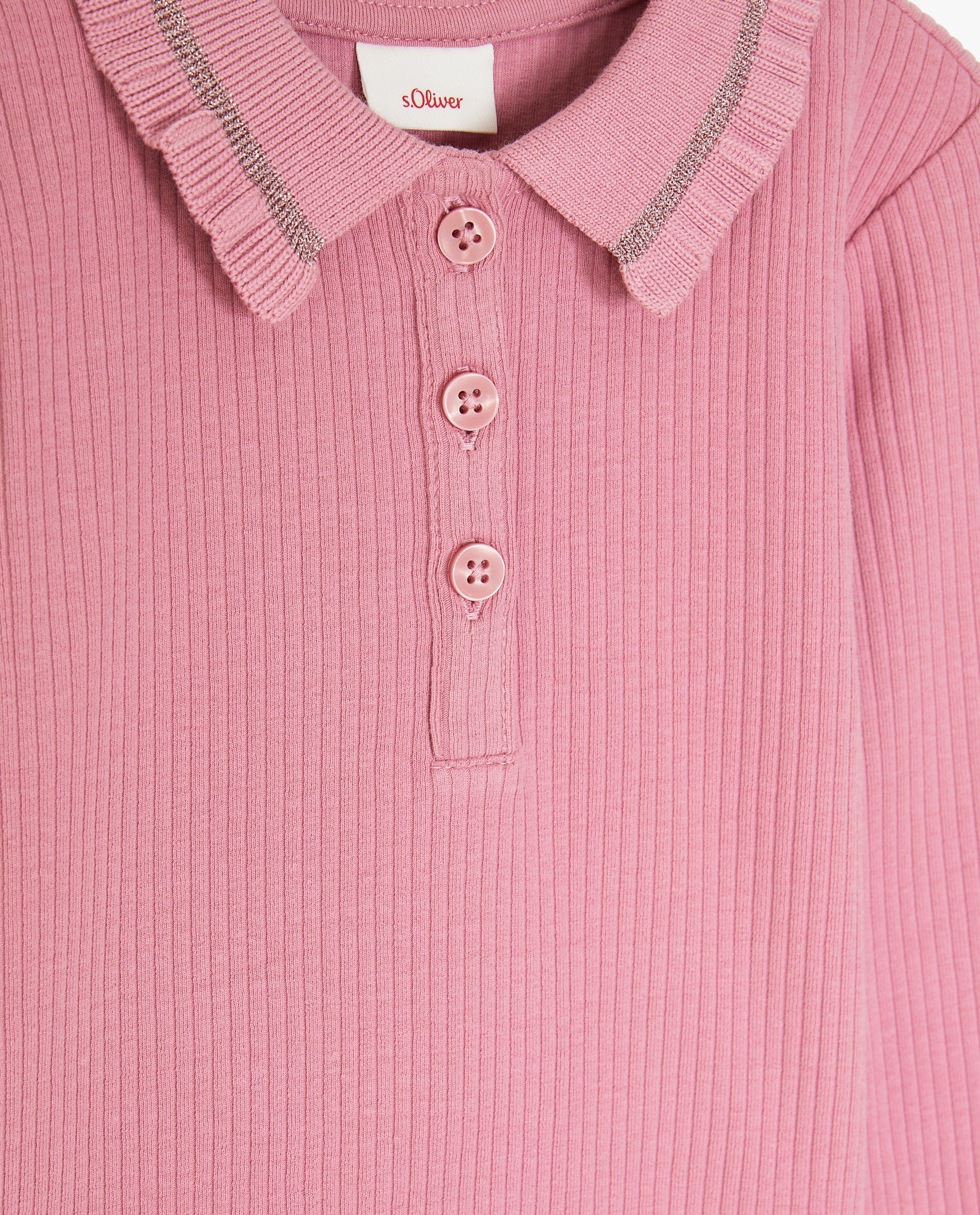 Les tenues pour enfants de s.Oliver, ce sont des looks ludiques et colorés. Ce superbe t-shirt à manches longues est confectionné en douce matière agrémentée d’un motif côtelé tendance. Le col est en fin tricot avec une rayure comportant un fil métallisé rose. La poitrine compte trois petits boutons et les bords ondulent joliment.