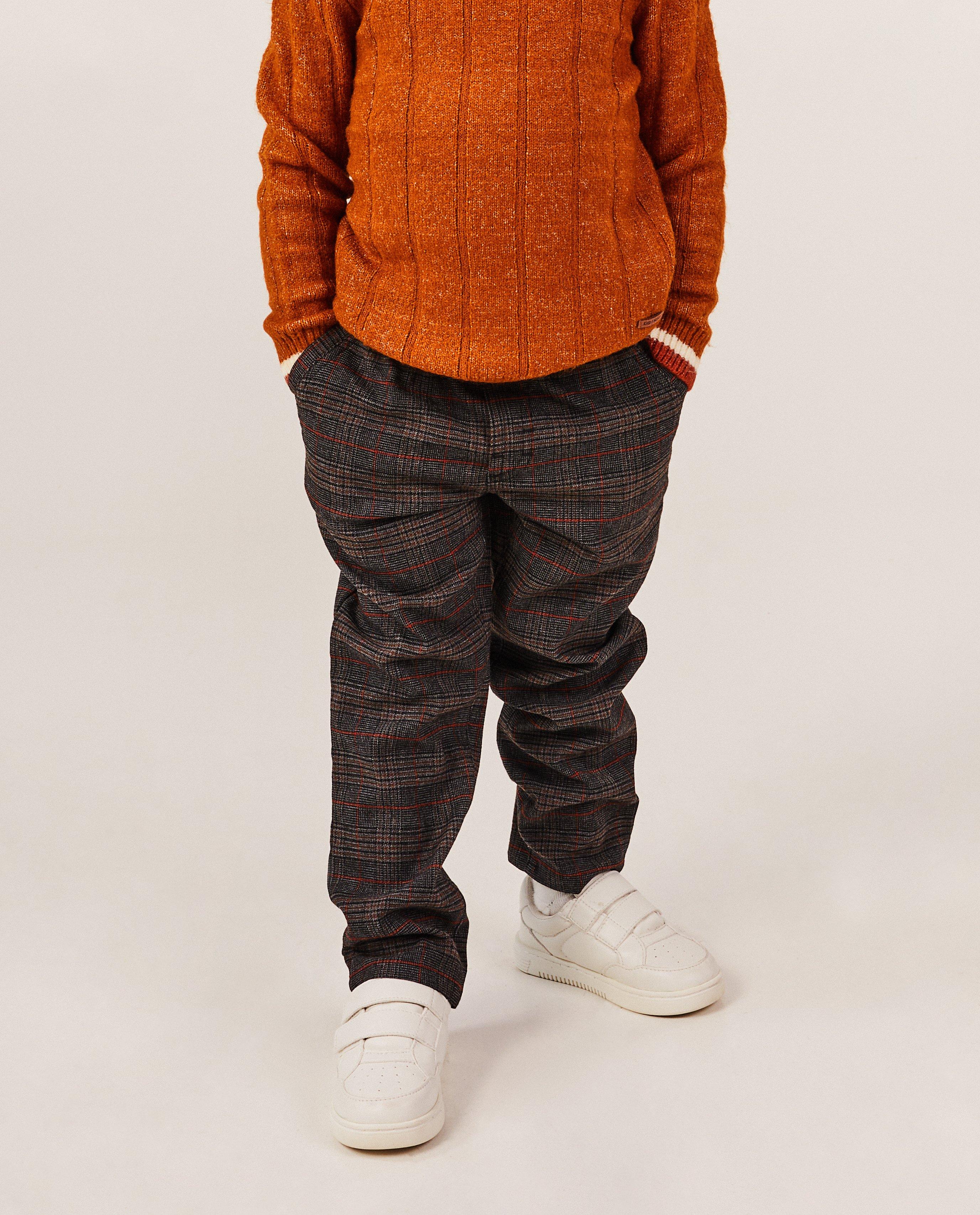 De tijd om gezellig dicht tegen elkaar aan te kruipen is eindelijk aangebroken. Gehuld in heerlijke laagjes met de mooiste oranje- en roodtinten genieten jullie samen van het najaar. Deze nette broek is gemaakt van een leuke stof die is versierd met trendy ruiten. De tailleboord is elastisch en is voorzien van een handig tunnelkoordje. Op de heupen en op de achterzijde zitten ook telkens twee zakken.