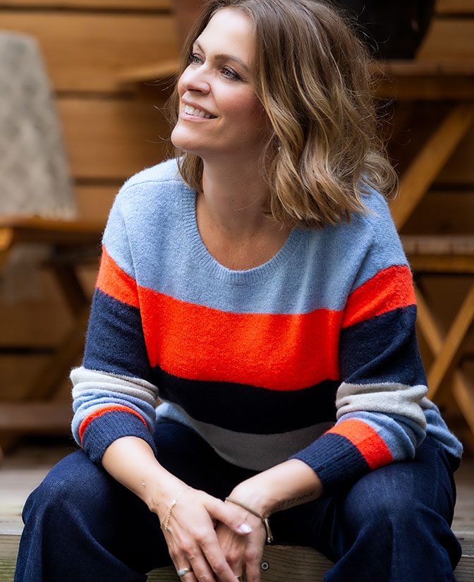 Een trui of vest in zachte wol: relaxed en mooi tegelijkertijd. Je goed in je vel voelen blijft voor Karen voorwaarde nummer één.