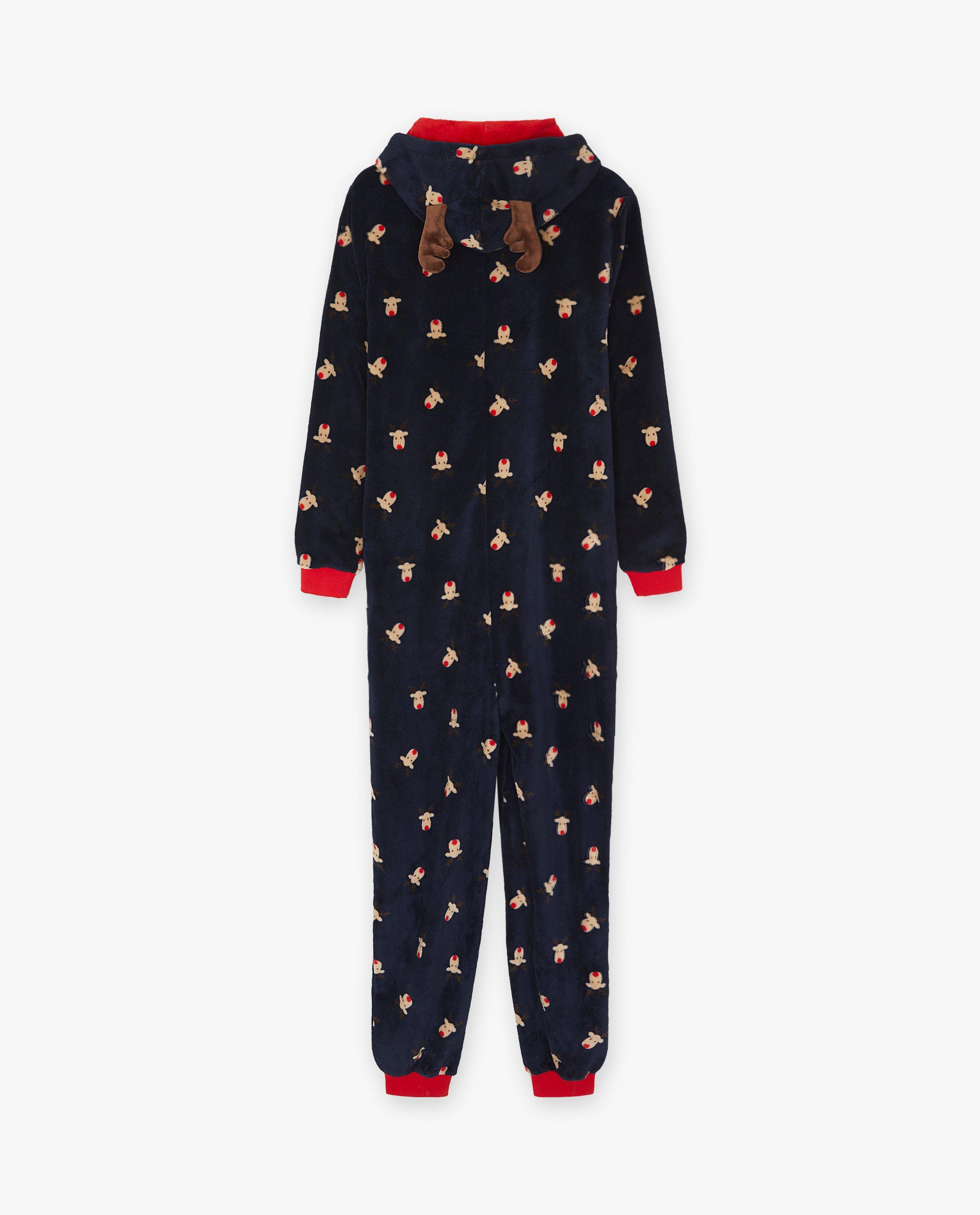 Het gezelligste seizoen is samen zijn, en er is geen beter moment om dat te vieren dan tijdens de kerstperiode! Geniet daarom met het hele gezin van alle prachtige familiemomentjes in onze matching #familystoriesJBC-kerstcollectie. Deze supertoffe onesie van donkerblauwe fleece heeft een leuke rendierprint en rode geribde boorden. De kap is versierd met twee bruine rendieroortjes en op de voorzijde zit een handige rits.