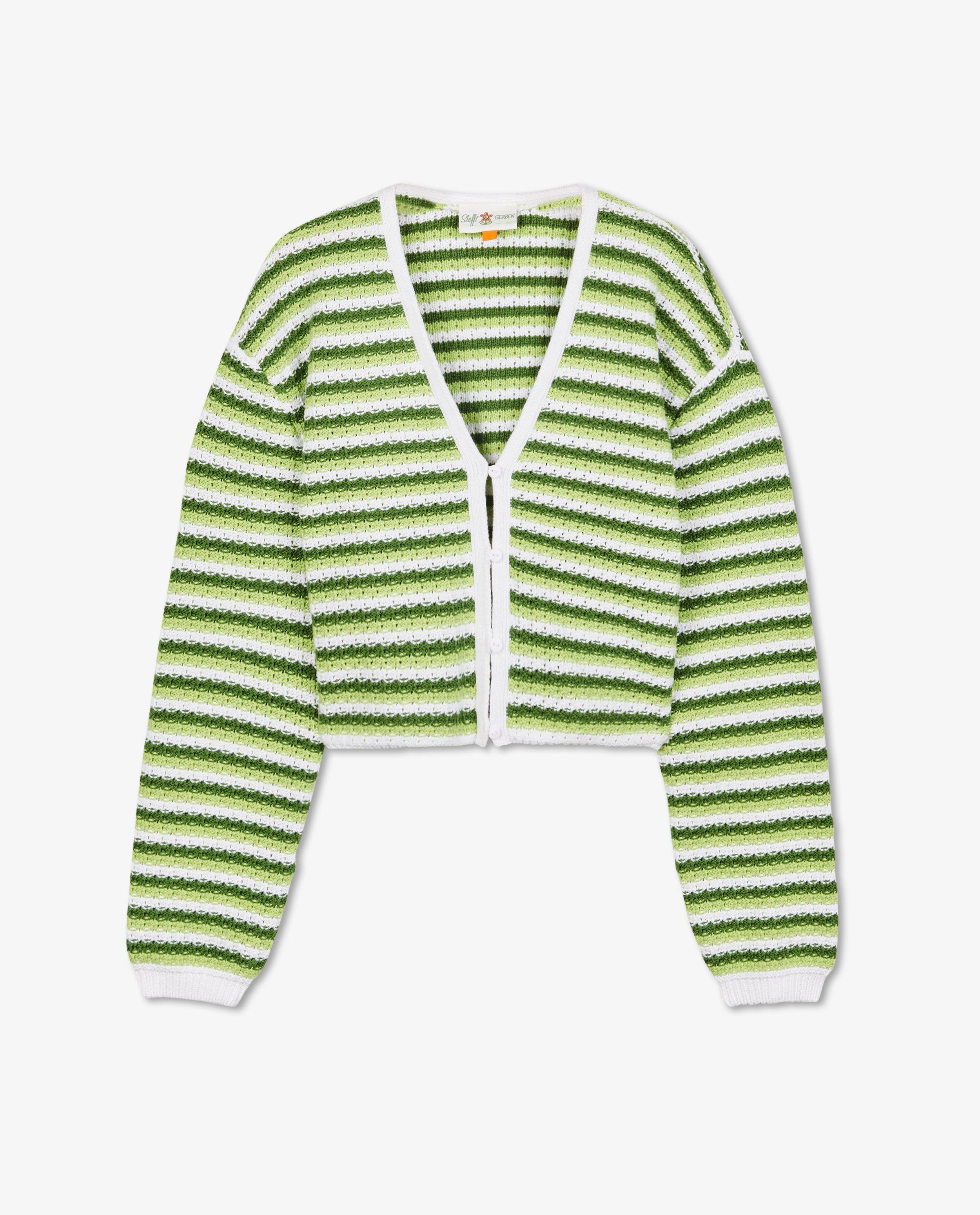 Deze leuke cardigan met zijn gebreid strepenpatroon heeft een V-hals, kleine witte knoopjes en lange mouwen met een witte geribde boord. Steffi Merci is terug én deze keer is ze niet alleen. Ook Gerben hielp met het ontwerpen van deze exclusieve collectie. Het resultaat? Outfits voor meisjes, jongens en twinninglooks!